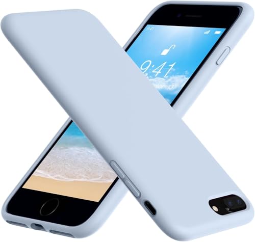 Generic - جراب حماية خلفي من السيليكون السائل عالي الجودة ومبطن الداخل لموبايل ايفون7 بلس _ ايفون 8 لبني فاتح