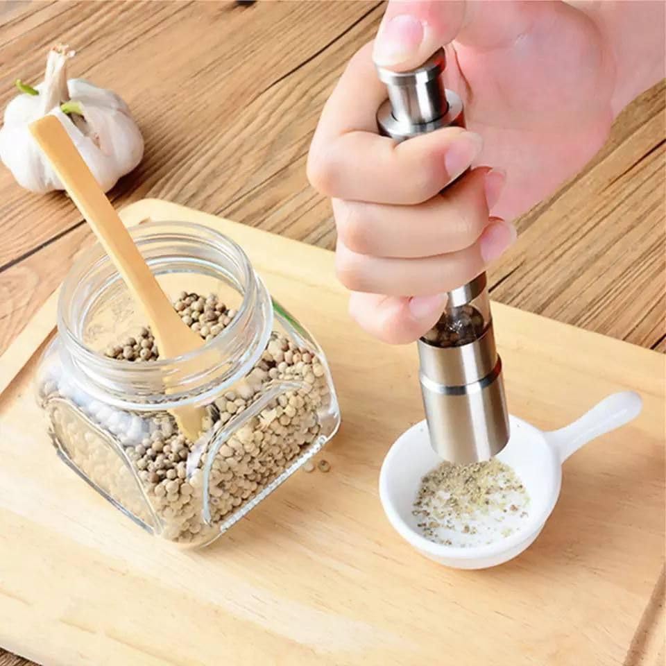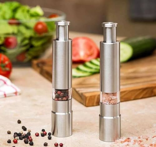 LC - مطحنة فلفل يدوية عالية الجودة من الستانلس ستيل 304 بمقبض قوي وسلاح حاد لطحن الفلفل والتوابل بسهولة في أي مكان بدون كهرباء (قطعتان)