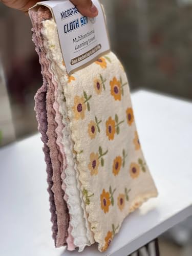Generic - فوط تنظيف ألوان فلوري من خامة الميكروفيبر عالية الجودة – طقم 5 قطع متعددة الاستخدامات للمنزل والسيارة ar