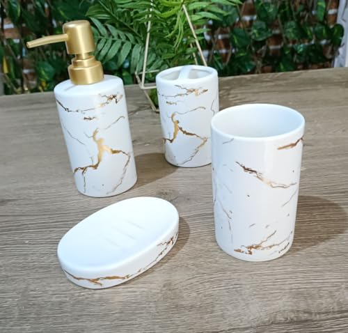- يتكون من 4 قطع مختلفة: يضم الطقم 4 قطع مختلفة تلبي احتياجاتك اليومية في الحمام.