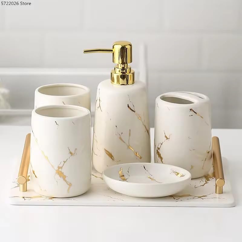- ديسبنسر صابون: يتضمن طقم الحمام ديسبنسر صابون يتيح لك سهولة استخدام الصابون بشكل نظيف.