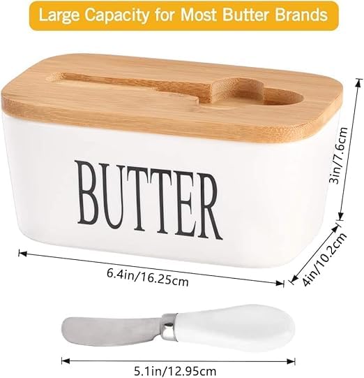 - 【يحافظ على ملمس الزبدة المثالي】 يدعم الهيكل المصنوع من البورسلين الصلب قوام الزبدة الثابت، مما يبقيها ناعمة وقابلة للدهن مع حماية النكهة والجودة، مما يجعلها مثالية للخبز المحمص والطبخ والخبز دون إحباط الزبدة الصلبة أو المجففة