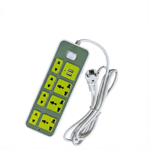 Generic - مشترك طاقة عالي الجودة من روكسي ستور، 2500 واط مع منفذين USB، واسلاك نحاسية نقية تضمن توصيل كهربائي افضل وأكثر امانا، لونه ليموني. (الموديل: NO-324A (7 منافذ))