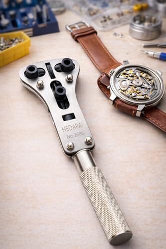 Generic - مفتاح عدة احترافي عالي الجودة من المعدن الثقيل سهل الاستخدام يناسب معظم مقاسات هيكل الساعة مع 12 سن بديل - طقم اصلاح وصيانة 3 نقاط مفتاح عدة برغي وفتاحة خلفية