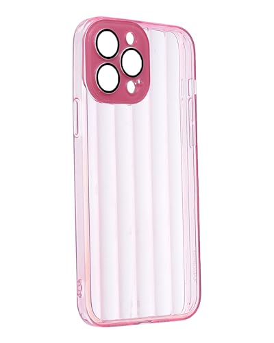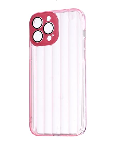 Generic. - جراب حماية خلفي من البلاستيك المضلع عالي الجودة مضاد للصدمات ومصمم بحافة مرتفعة لحماية عدسة الكاميرا لموبايل آيفون 13 برو ماكس - لون وردي شفاف