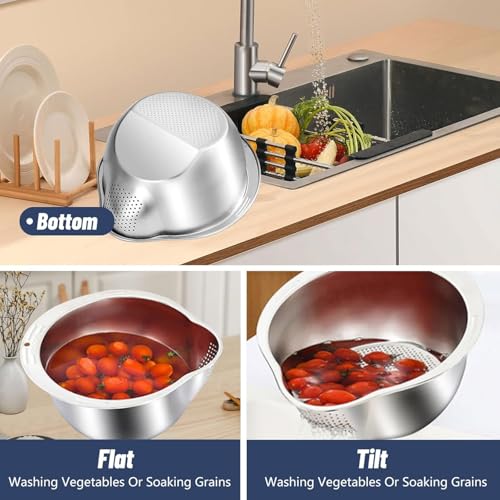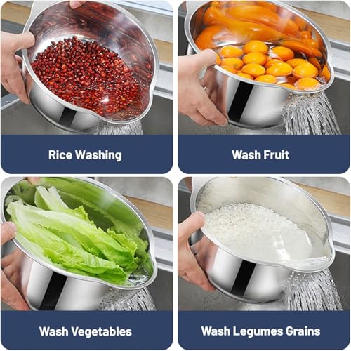 Generic - مصفاة أرز عالية الجودة من الفولاذ المقاوم للصدأ متعددة الأغراض، يمكن استخدامها كوعاء لغسل الخضروات والفواكه