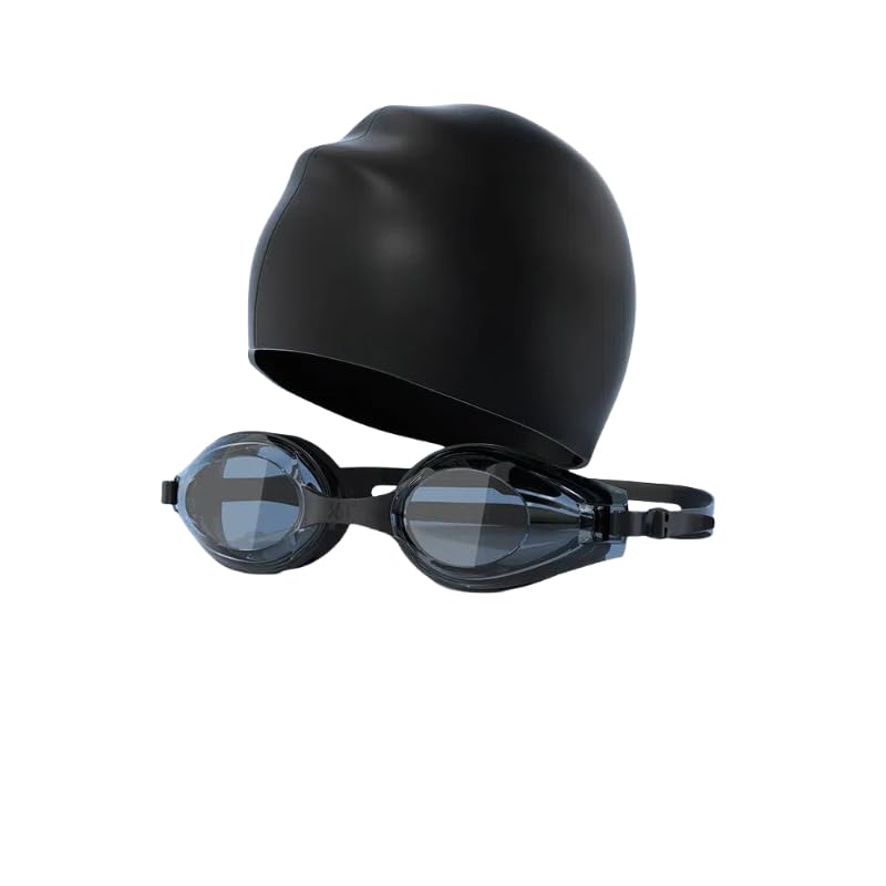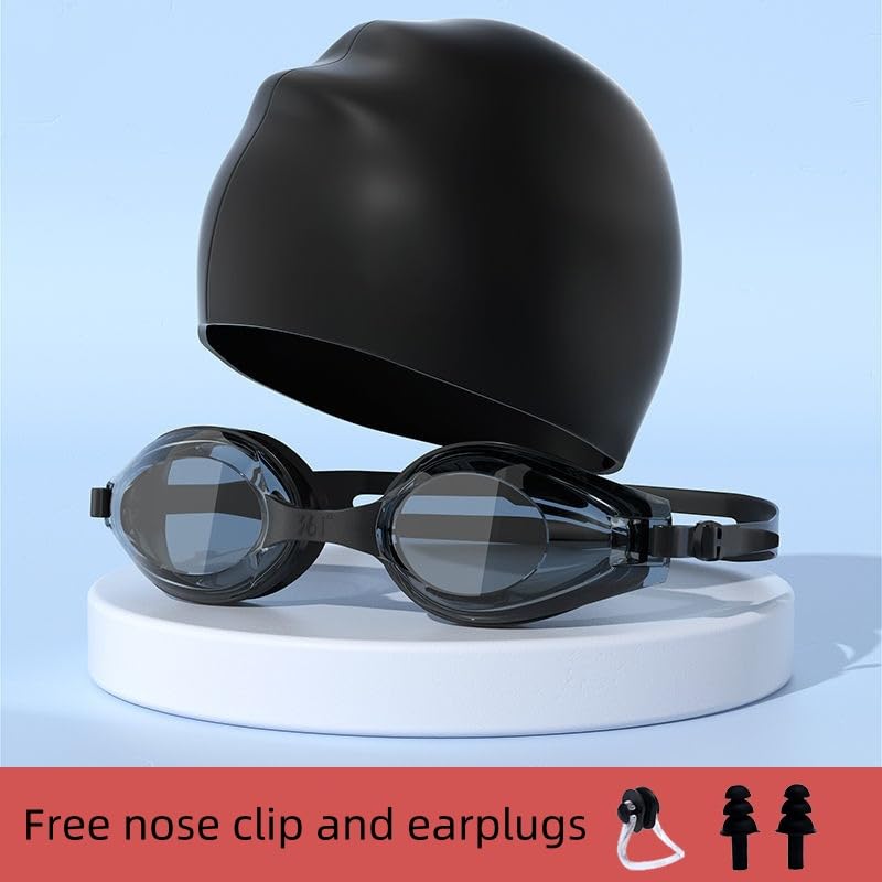 Generic - طقم نظارات سباحة وقبعة شفافة عالية الجودة HD مقاومة للماء ومضادة للضباب مناسبة للبالغين من الرجال والنساء والمراهقين مع مشبك انف وسدادات اذن مجانية