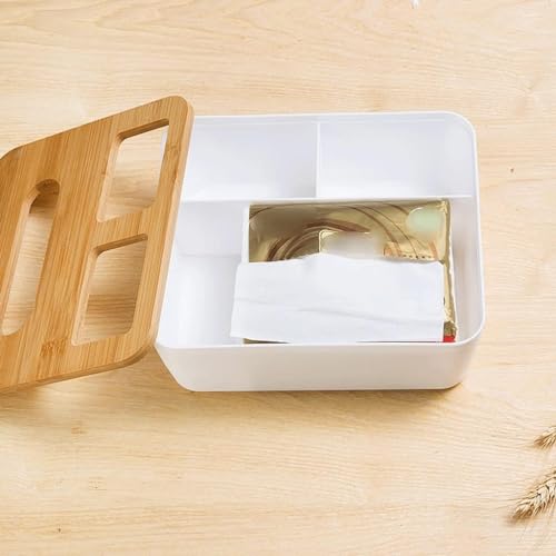 Generic - "علبة منظم مناديل وريموت بلاستيكي بغطاء خشبي عالي الجودة"