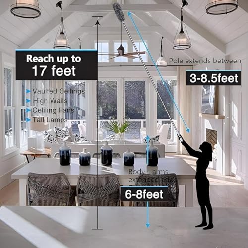 Generic - منفضة تنظيف يدوية عالية المدى مصنوعة من الفولاذ المقاوم للصدأ للمناطق التي يصعب الوصول إليها، تزيل الغبار والأوساخ بشكل فعال؛ تصميم قابل للطي لسهولة التخزين والنقل يصل طولها الي 3 امتار