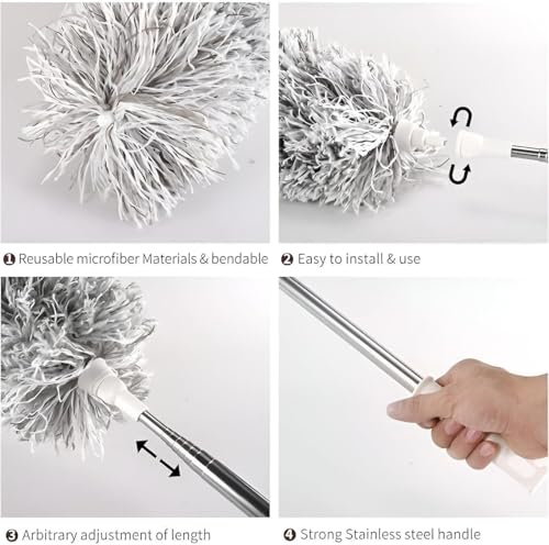 - تم تصميم منفضة الغبار المصنوعة من الفولاذ المقاوم للصدأ خصيصًا لتنظيف الأماكن المرتفعة والتي يصعب الوصول إليها، مما يضمن لك إمكانية إزالة الغبار والحطام بشكل فعال من جميع الزوايا والأسطح دون الكثير من المتاعب، مما يجعلها خيارًا مثاليًا لمهام التنظيف الشاملة.