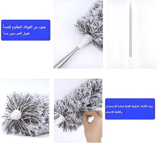 - يتميز Duster من الألياف الدقيقة بمقبض من الفولاذ المقاوم للصدأ القابل للتمديد بطول 2.5 متر ، مما يتيح لك الوصول إلى الأسقف العالية ومراوح السقف بسهولة. يزيل تصميمه المبتكر الحاجة إلى السلالم أو التسلق غير الآمن ، مما يجعل التنظيف مساحات عالية أكثر أمانًا وأكثر كفاءة.