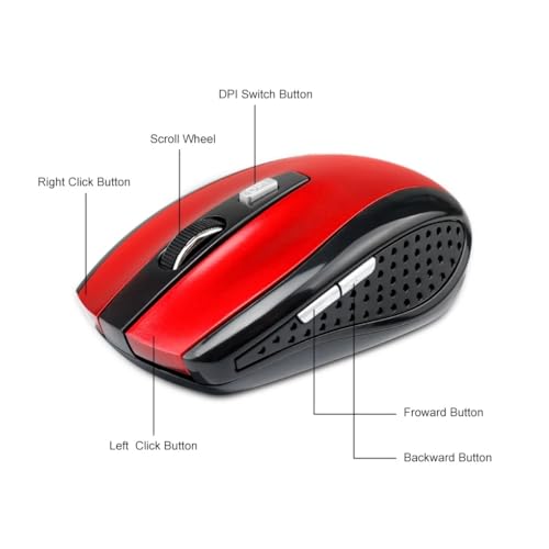 Generic - ماوس لاسلكي عالي الحساسية 2.4GHz مع مستقبل USB - تصميم مريح وعملي - دقة 1600 DPI - مدى تشغيل حتى 10 متر - بطارية تدوم حتى 15 ساعة-احمر