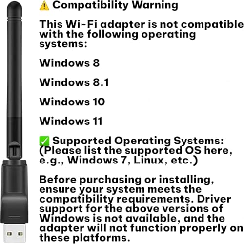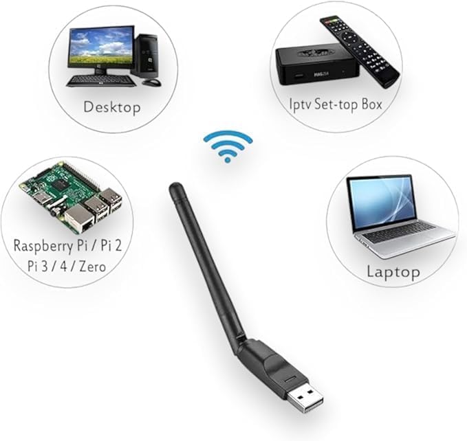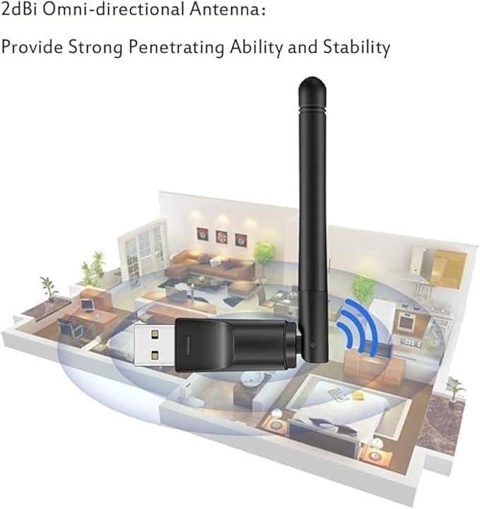 Generic - مستقبل واي فاي USB عالي السرعة بهوائي خارجي طويل المدى - متوافق مع الكمبيوتر المكتبي واللابتوب والرسيفر والـ Raspberry Pi - يدعم ويندوز ولينكس – اللون اسود