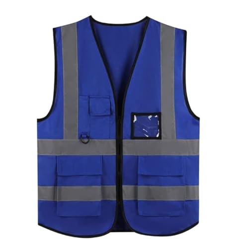 Generic - سترة امان عالية الوضوح، سترة عمل عاكسة زرقاء مع جيوب متعددة الوظائف، مقاس 3XL
