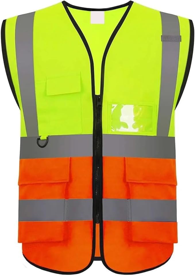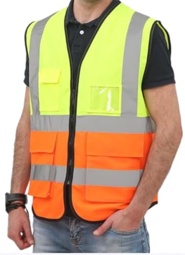 Generic - سترة امان عالية الوضوح، بلونين اصفر وبرتقالي، شرائط عاكسة، جيوب متعددة، للجنسين مقاس 2XL
