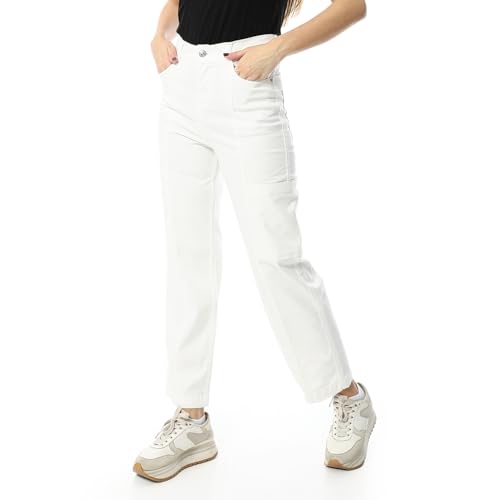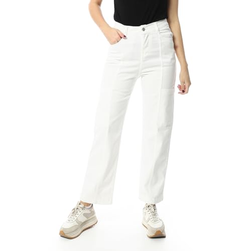 Coctail - بنطلون كارجو بخصر مرتفع وارجل مستقيمة، اوف وايت، قصة كاجوال مع جيوب جانبية - 9841
