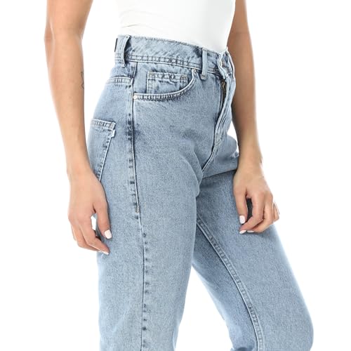 Coctail - بنطلون جينز بخصر مرتفع وأرجل مستقيمة، لون أزرق دينيم فاتح-9514