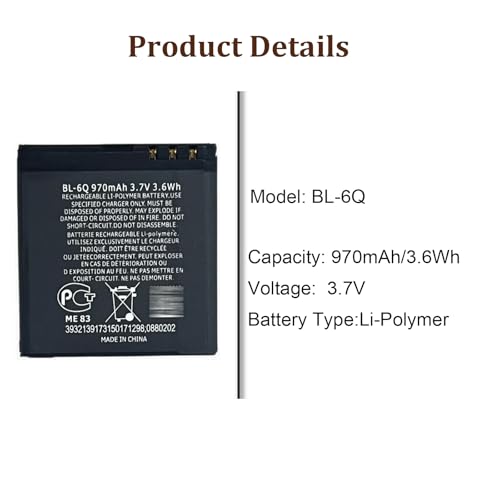 HIGHAKKU - بطارية بديلة BL-6Q متوافقة مع نو-كيا 6700 كلاسيك/نو-كيا 6700 ايلوفيال من هاياكو