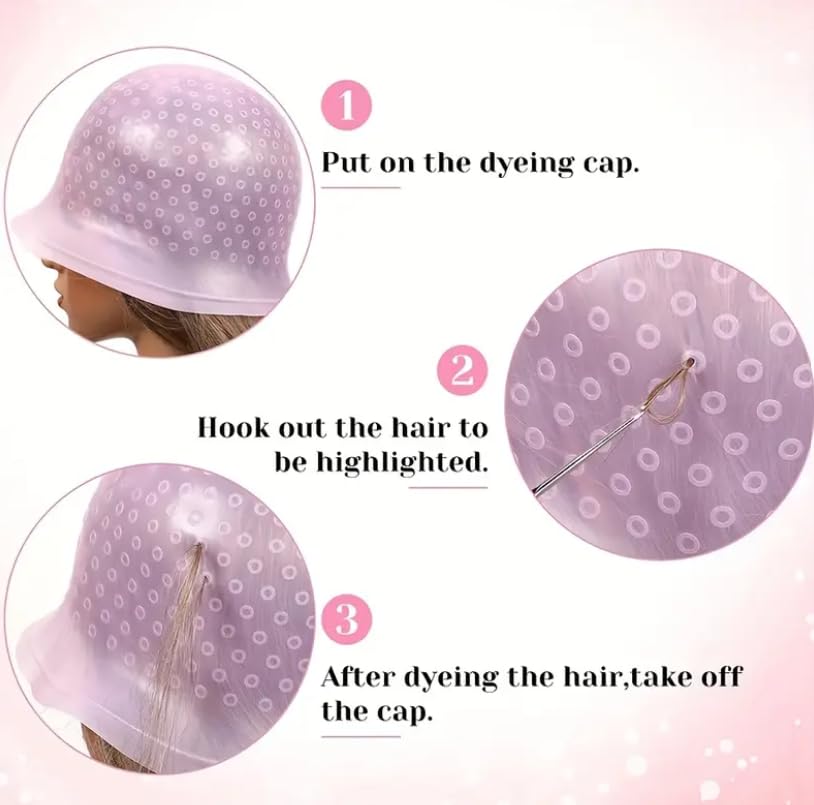 - يمكنكِ استخدامها في الصالون وفي المنزل. محتويات العبوة: 1 طاقية من السيليكون و1 خطاف معدني.