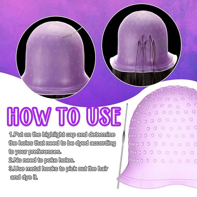 - ملاحظة: طاقية هايلايتن فروستينج بدون ثقوب، ما يتيح لك اختيار الأماكن التي ترغبين بتلوينها، وحماية الأماكن التي لا ترغبين بتلوينها. قبل الاستخدام الأول، يجب ثقب الثقوب بطرف إبرة حادة ساخنة (سهلة الاستخدام).