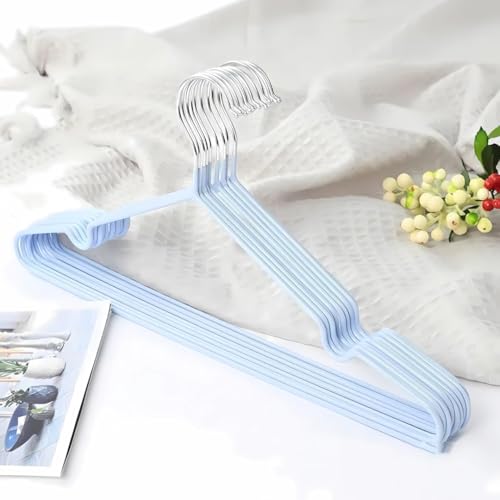 Daga - شماعات ملابس عالية الجودة وقوية، مصنوعة من الفولاذ بألوان باستيل، موفّرة للمساحة ومثالية للسفر، مزودة بكتف مانع للانزلاق، 10 قطع (أزرق فاتح)
