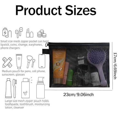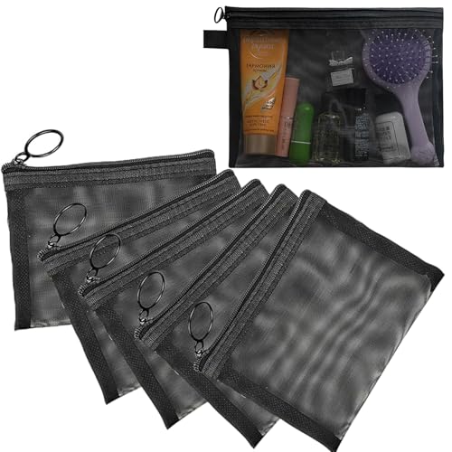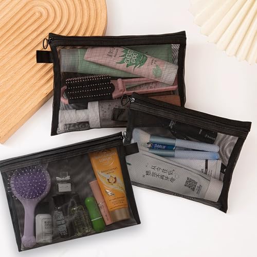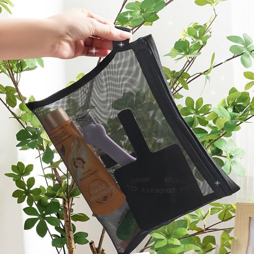 HIHIDAY - 6 قطع من حقائب النايلون الشبكية بسحاب من هايهايداي، حقيبة مكياج شبكية مع سحاب، حقيبة سفر صغيرة، مجموعة ادوات الزينة للسفر، حقيبة تخزين، منظم اكسسوارات مستحضرات التجميل للنساء والرجال، اسود