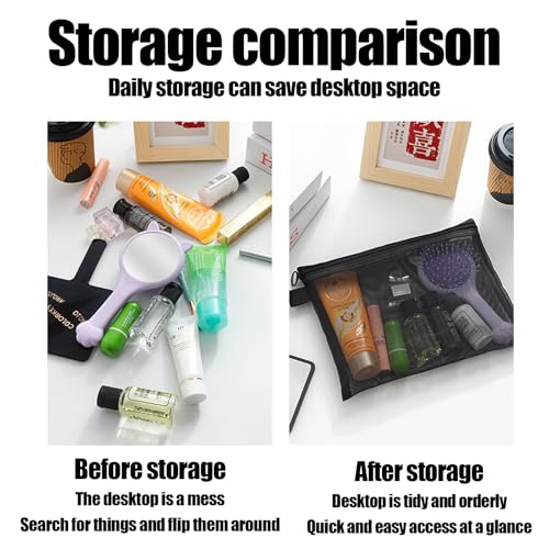- استخدامات متعددة: حقائب التخزين الشبكية هذه متعددة الاستخدامات ويمكن استخدامها كحقائب شبكية لأدوات النظافة أو حقائب تنظيم مستحضرات التجميل أو حقائب صغيرة بسحاب للسفر. يسمح تصميم السحاب الشبكي بسهولة الوصول والإغلاق الآمن، مما يجعله مثاليًا للحفاظ على الأشياء مرتبة ومنظمة ويسهل الوصول إليها