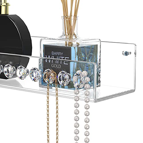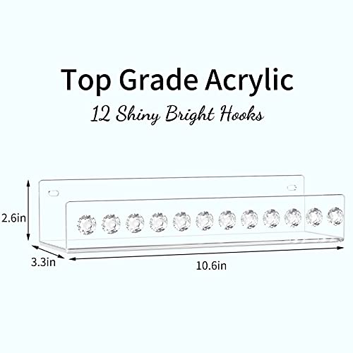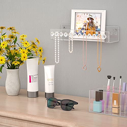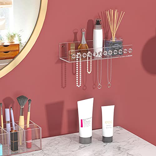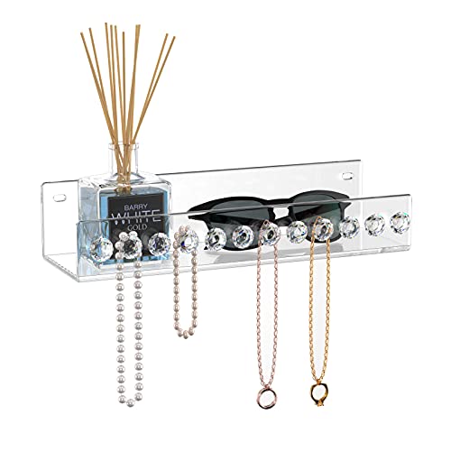 HIIMIEI - هايميي منظم مجوهرات يثبت على الحائط مع رف من الاكريليك، حامل مجوهرات يثبت على الحائط لتخزين القلائد والاساور، شفاف