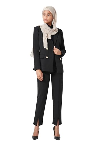Hijab House - Black Slit Hem Trousers - High-waisted Cigarette Pants
