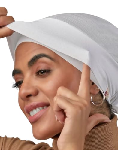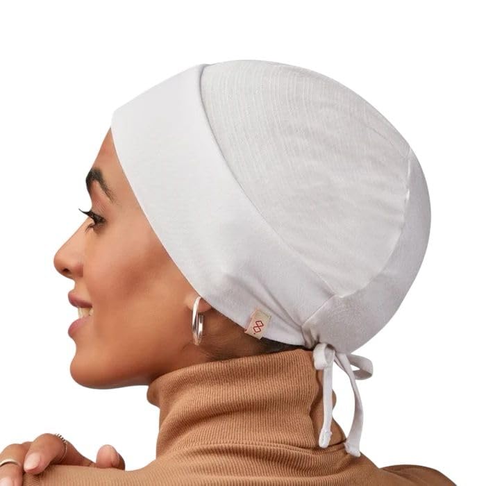 Hijabe - باندانه مزدوجة من القطن والخيزران برباط سحب بدون خياطة مريحة للغاية وصحية وثابتة للغاية على الشعر، مقاس واحد