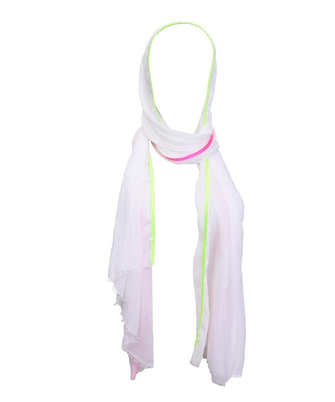Hijabya - سكارف قطن مطرز ناعم للنساء من حجابية- 75 سم × 200 سم - ابيض 2، مقاس واحد