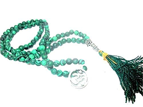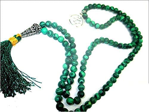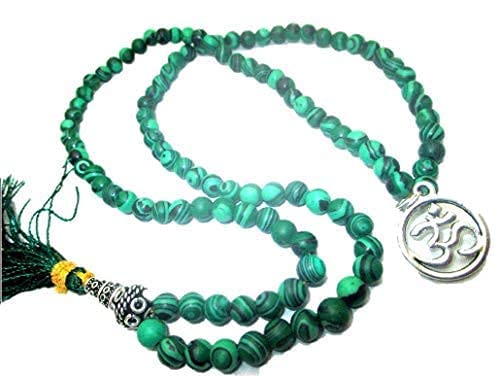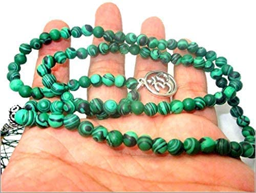 Hijet - HiJet 108 +1 حبة ملاكيت مالا مع سحر الحظ OM AUM 28-32 طويلة موازنة الطاقة الإيجابية التناغم يوجا التأمل ريكي طبيعي أصيل نمط أزياء عيد الفصح الميلاد للبالغين من الجنسين