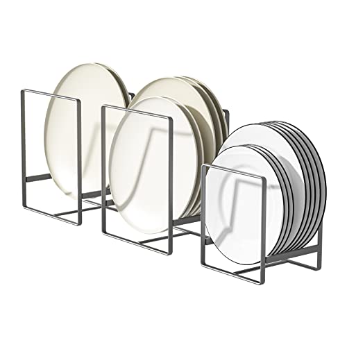 Hikinlichi - حامل أطباق مستقل من المعدن للتثبيت على الحائط أو الخزانة الطاولة لتنظيم الأطباق هيكينليشي مجموعة 3 قطع لون رمادي ممحاة مطاط