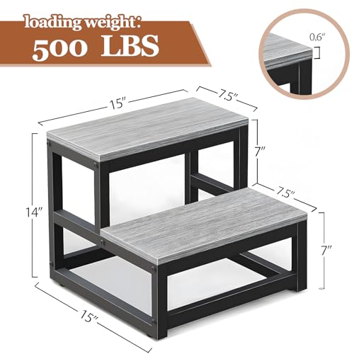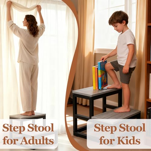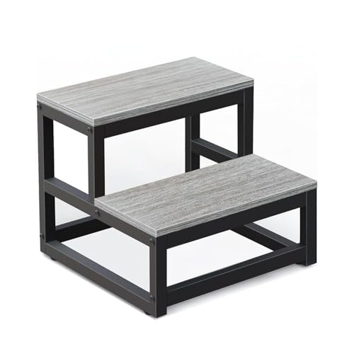 HIKKY - كرسي أطفال من طبقتين من هيككي، كرسي للأطفال الصغار غير قابل للانزلاق، مسند قدم متين ورف للنباتات، درج معزز متعدد الاستخدامات، كرسي سلم خشبي للمطبخ والحمام والمرحاض (رمادي)