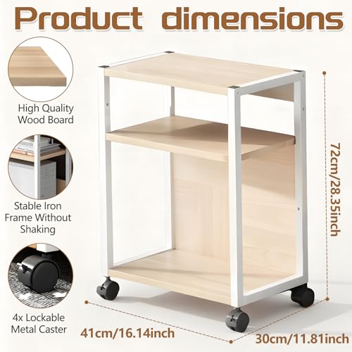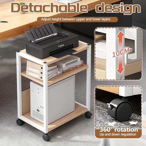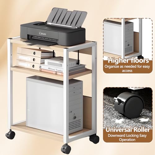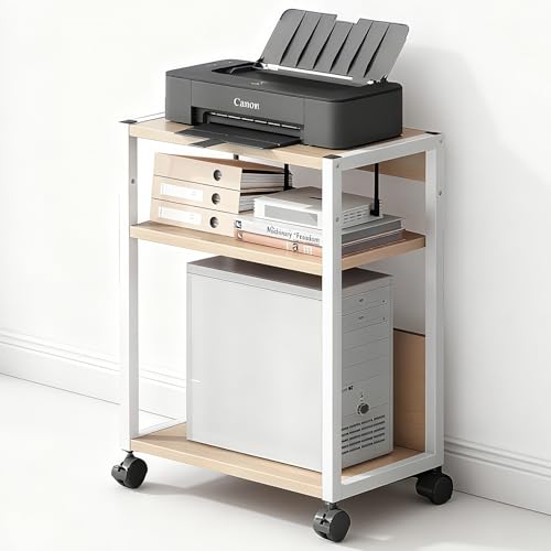 HIKKY - حامل طابعة من 3 طبقات من هيككي، منظم مكتب متحرك مع ارفف تخزين، عربة طابعة دوارة قائمة على الارض مع عجلات للماسح الضوئي وجهاز الفاكس والملفات