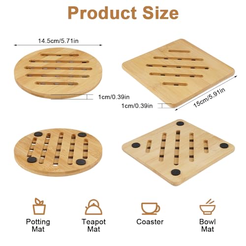 HIKPACKER - قواعد أكواب من الخيزران مانعة للانزلاق ومقاومة للحرارة مصنوعة من الخشب للمطبخ لحلة الطهي والأطباق من هيك باكر، 4 قطع