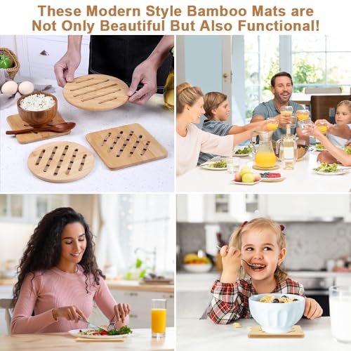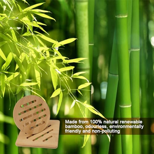 - قواعد أكواب من الخيزران الطبيعي: حامل قوي مصنوع من الخيزران الطبيعي، عديم الرائحة، صديق للبيئة، غير ضار بالبيئة وليس من السهل تشويهه. السطح الأملس لن يؤذي يديك. يتميز الخيزران بمقاومة ممتازة للحرارة ويوفر حماية صديقة للبيئة لسطح المطبخ/سطح العمل/الطاولة.