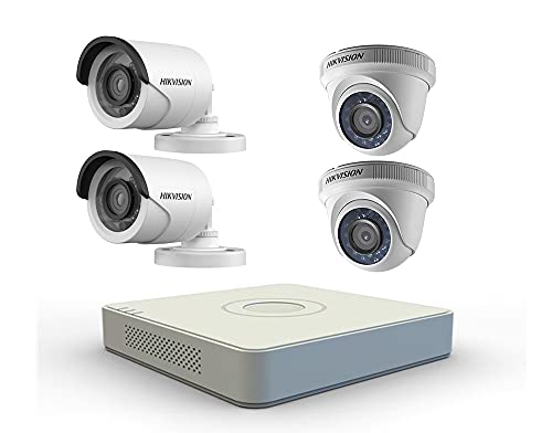 Hikvision - طقم من أربع كاميرات مراقبة بدقة 1 ميجا بيكسل مع جهاز تسجيل 4 قنوات