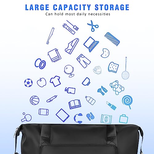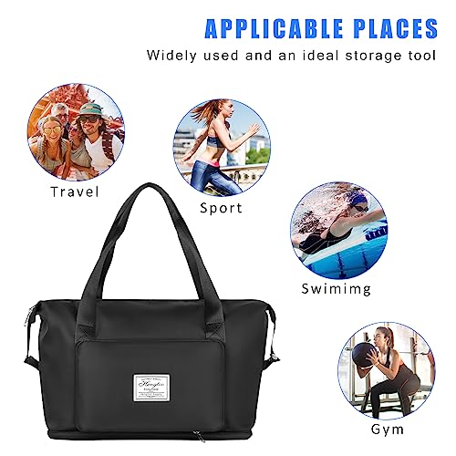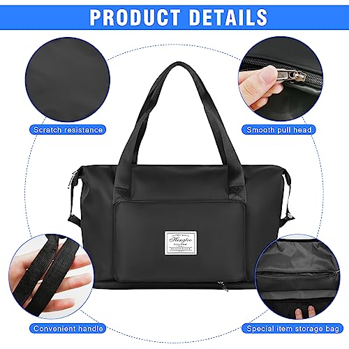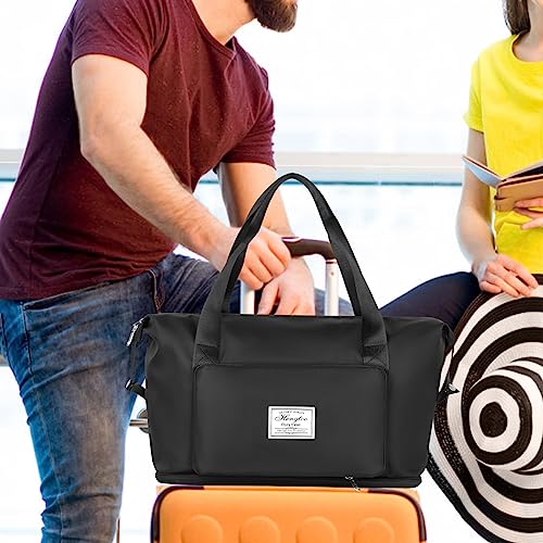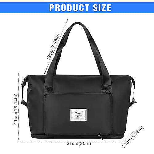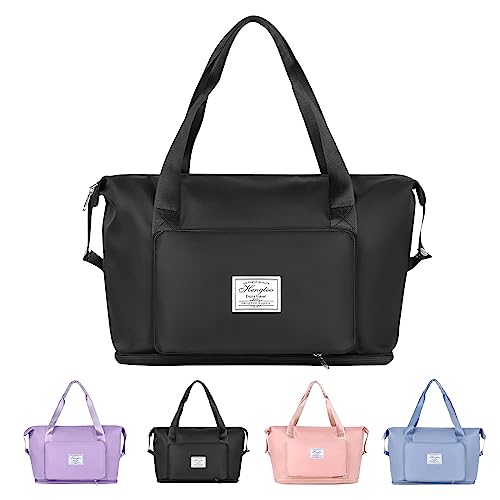 Hileyu - شنطة دفل للسفر وعطلة نهاية الأسبوع، شنطة سفر قابلة للتوسيع والطي للجيم، شنطة يد كبيرة توت مقاومة للماء للنساء، شنطة مستشفى للعطلات والرياضة والسفر, أسود