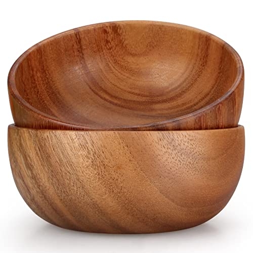 Hilislog - اوعية خشبية صغيرة للسلطة من هيليسلوج تقديم خشب الاكاسيا وعاء مزخرف والوجبات الخفيفة والحبوب - قطعتين عدد القطع: 2