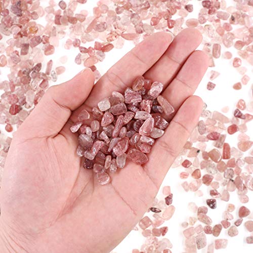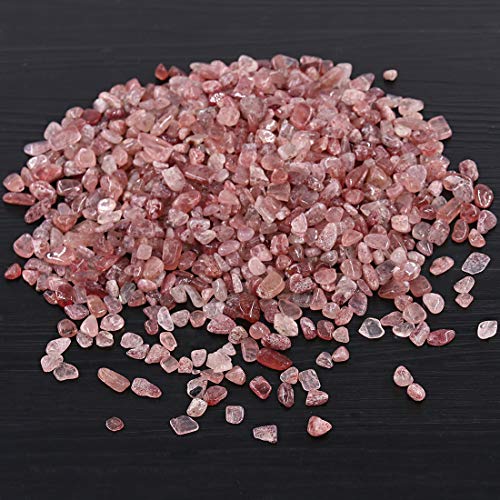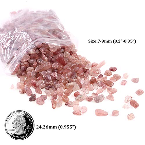 Hilitchi - حبيبات حجر فينج شوي الاستشفائي مصنوعة من الكريستال الطبيعي والكوارتز للديكور المنزلي من هيليتشي (حوالي 1 رطل (450 جرام)/ الكيس) - ستروبري كوارتز