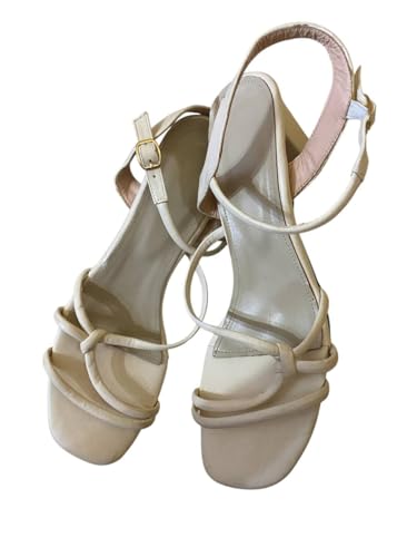 Generic - صندل عصري بكعب متوسط وحزام رفيع للنساء من هيلز بلون بيج فاتح، مقاس 41 EU