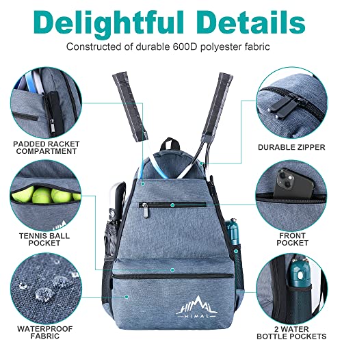 Himal Outdoors - هيمال اوتدورز حقيبة ظهر للتنس - مساحة تخزين كبيرة تحمل مضربين وضروريات مع تنس وبيكل بول وكرة مضرب، مناسبة للنساء والرجال والمراهقين