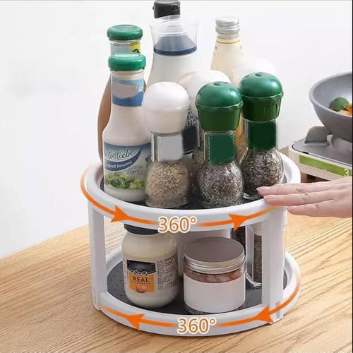 Himilucky - منظم توابل ليزي سوزان دوار من طبقتين، منظم توابل مقاس 25.4 سم، دوار 360 درجة للمطبخ والثلاجة ودولاب تخزين المؤن والمكتب والحمام