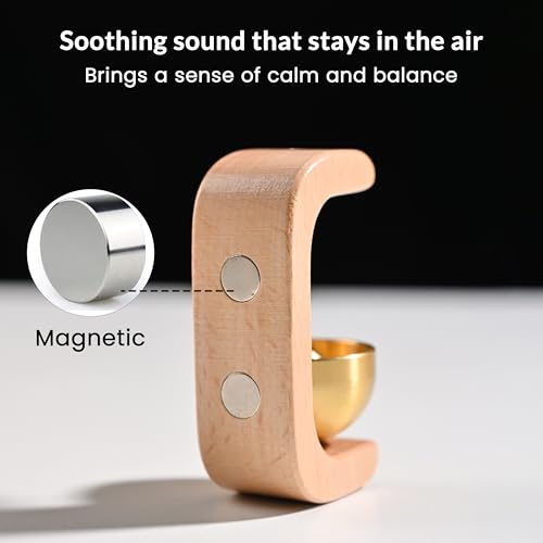 HindCraft - جرس باب مغناطيسي خشبي لمدخل المنزل من هيند كرافت | جرس رياح من خشب الزان مع صوت نحاسي | ديكور للثلاجة والزجاج والمدخل | هدية الانتقال لمنزل جديد، جرس صغير لطيف