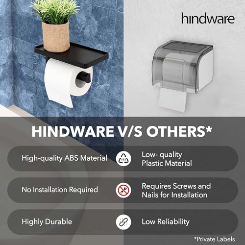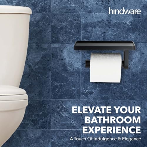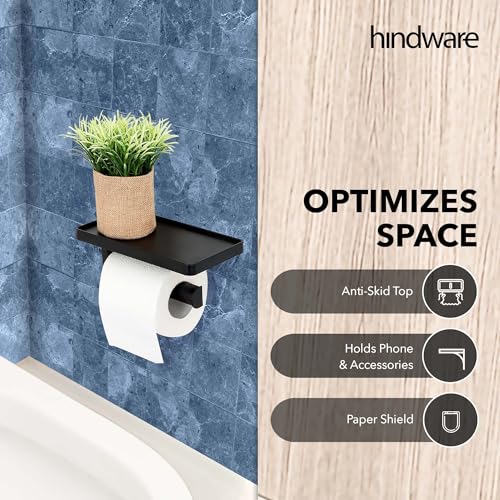 Hindware - حامل ورق تواليت ذاتي اللصق للحمام مع حامل للموبايل من هيندوير