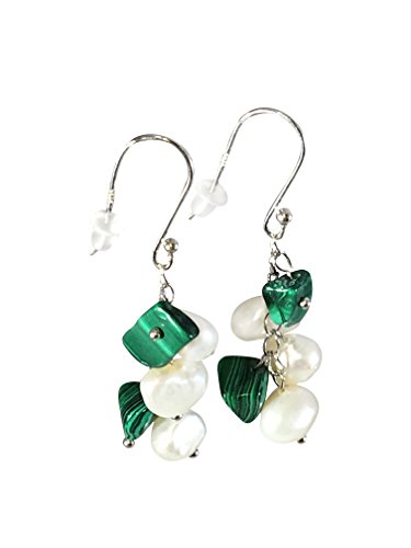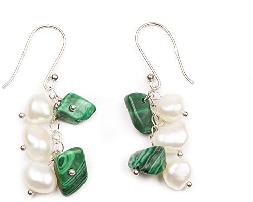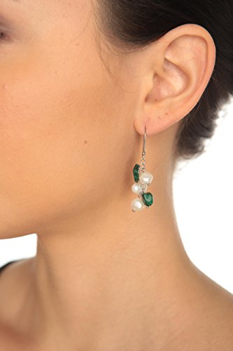 HinsonGayle Fine Pearl Jewelry - اقراط متدلية من الفضة الاسترليني مرصعة باللؤلؤ والاحجار الكريمة المستزرعة في المياه العذبة هينسون غايل 10 الوان لؤلؤ اكوامارين مجوهرات هينسونغايل فاين بيرل أبيض للنساء بنات