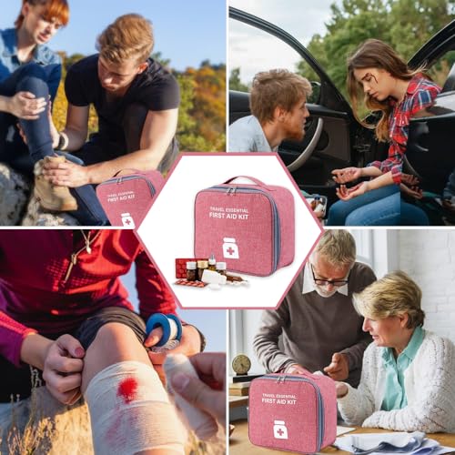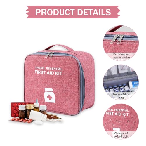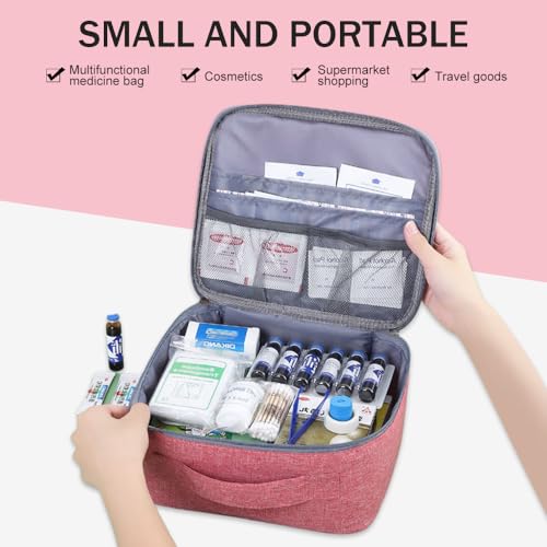 HIOQFR - شنطة إسعافات أولية فارغة للسفر من هيوكفر، شنطة طبية مضادة للماء، شنطة أدوية محمولة للسفر، شنطة أدوية كبيرة للمنزل والمكتب، أحمر واين