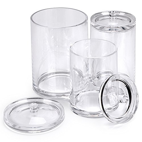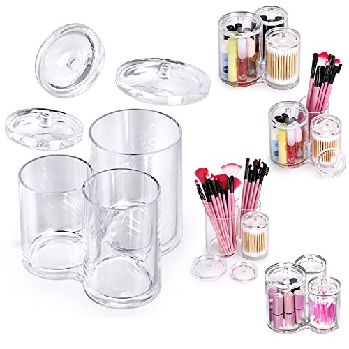 Hipiwe - هيبيوي حامل اعواد قطنية اكريليك شفاف عالي الجودة، علبة دائرية لتنظيم فرش المكياج، برطمان صيدلي شفاف