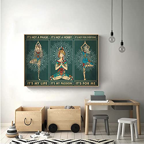 Generic - بوستر لبنت بوهيمية تتامل باليوجا مع خلفية من الماندالا على لوحة قماش - تابلوه حائط شاكرا للتامل الروحي - ديكور منزلي عصري لغرفة النوم - صورة مطبوعة كانفس (12 × 16 بوصة (30 40 سم) - بدون برواز)، أخضر.